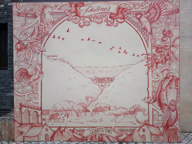 “SOMOS UNO” Este mural, realizado en Patones (Madrid) con técnicas pictóricas junto con Ana Irigoyen, surge gracias a “Paredes que Hablan”. Este es un proyecto del Centro de Innovación Turística de la sierra norte de Madrid para el embellecimiento de los cascos históricos, financiado por la Unión Europea. Ubicación: Patones (Madrid) Fecha: Octubre 2024