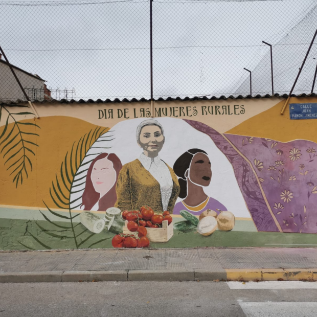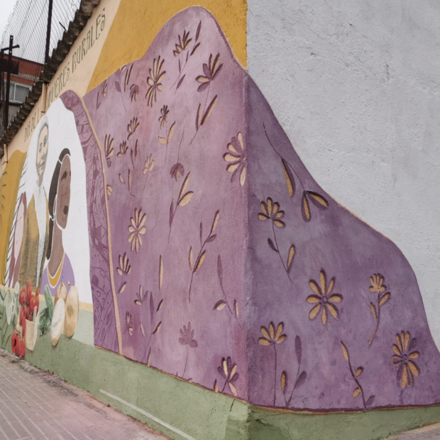 Este es un mural colaborativo, realizado en Mejorada del Campo (Madrid) organizado y diseñado junto con Paloma Meléndez y Ana Irigoyen como conmemoración de las mujeres rurales.