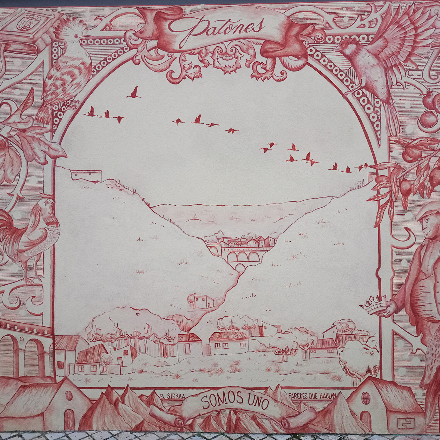 En este mural mezclamos técnica pictórica con esgrafiado segoviano.